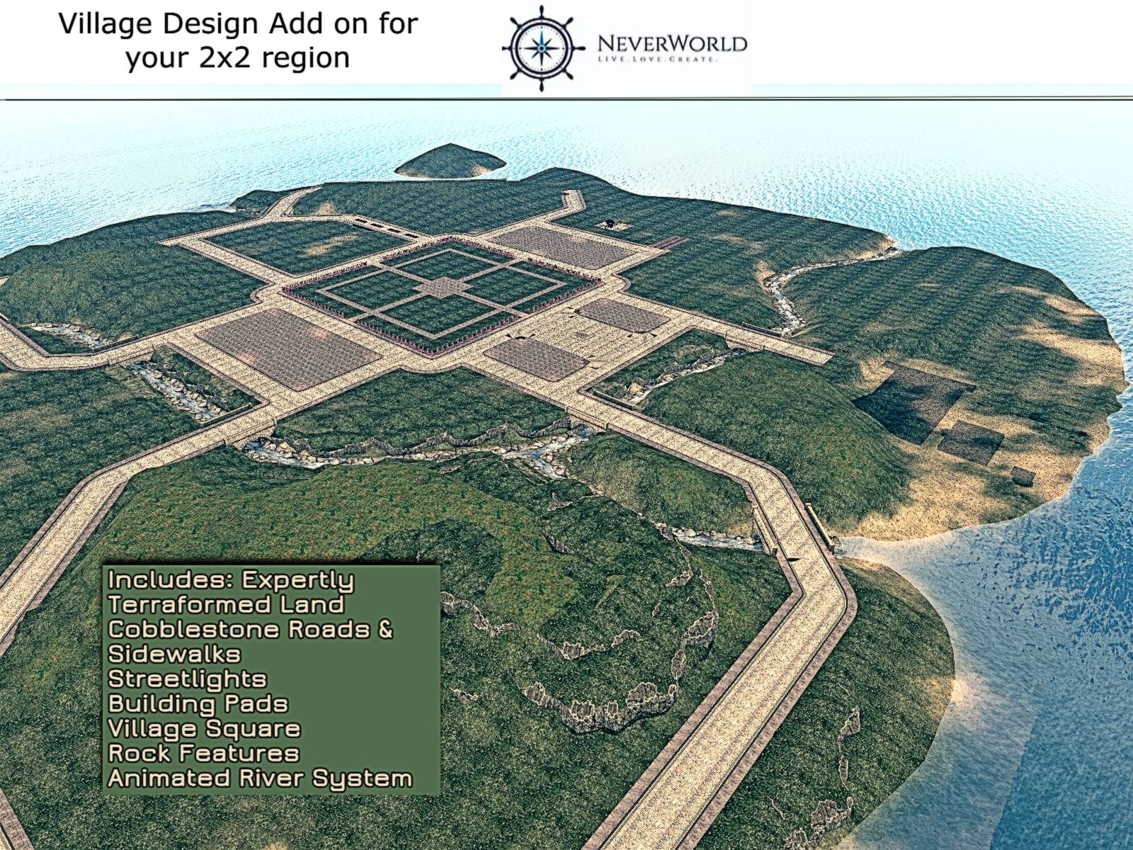 Includes: Lighting, Road system, Village Square, creeks, and terraforming
