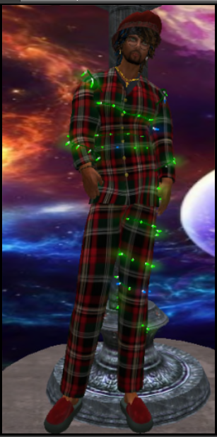 A matching set of Christmas PJs for you and your partner for opening presents around the fire on Christmas morning. Includes several sizes of PJs for the men, and nightshirts for the women, fluffy slippers, and a Christmas cap. Bonus Xmas loveseat with animations so you can sit while you open presents. have a happy!