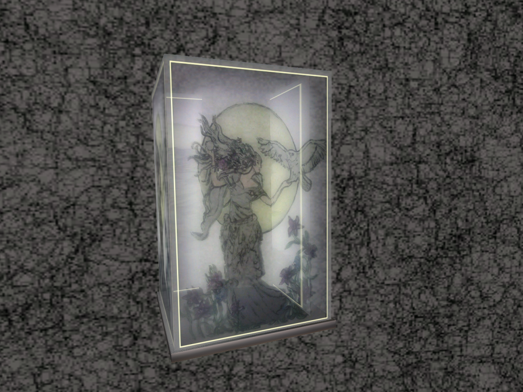 From a Reverse Painting on glass I did in RL. This item is full perm so it can be resized, taken apart and used as something else.