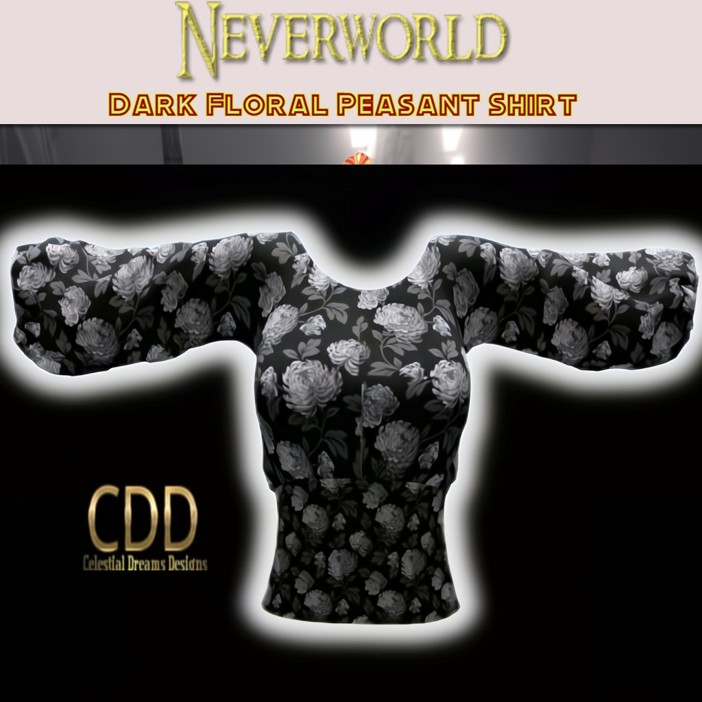 Dark floral in monotone, rigged for Athena. Only from Celestial Dreams and free on Neverworld.