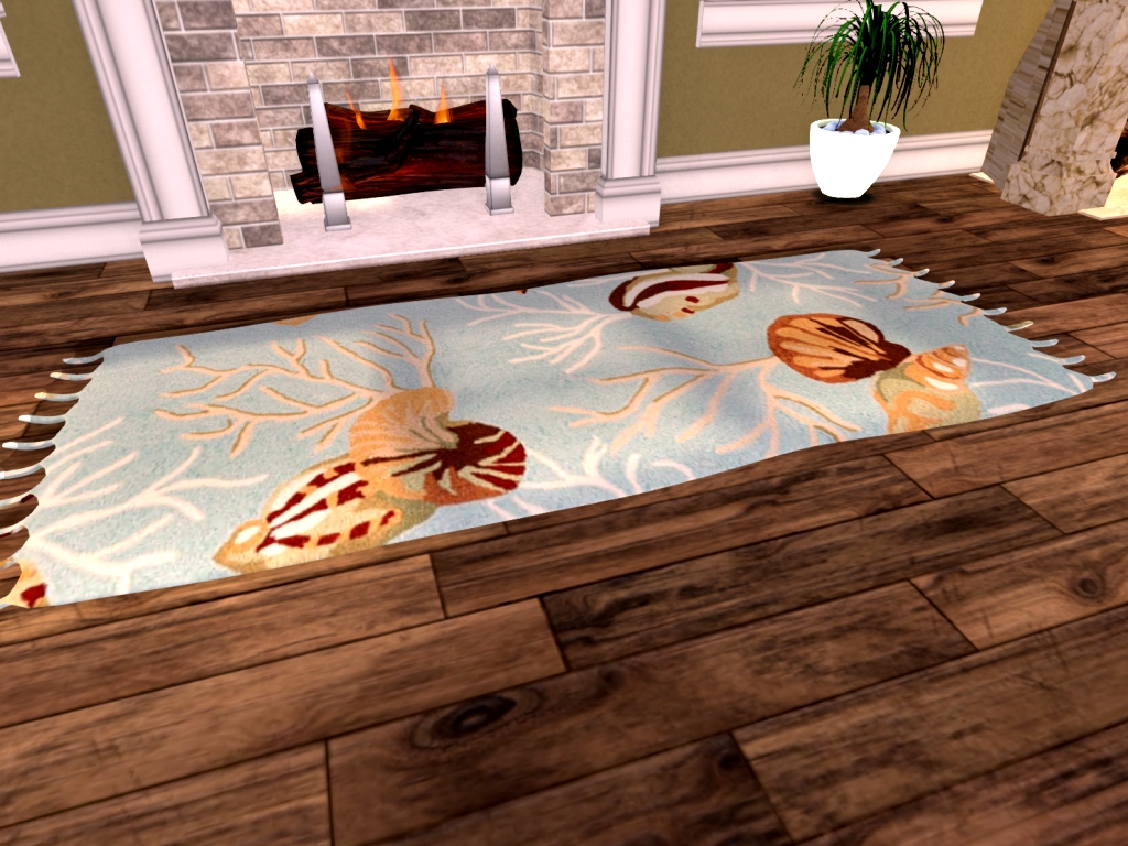 Just two prims each, these scatter rugs are in soft seaglass colors. For entryway, outdoor patio, bedroom, living or, bathroom, or in front of your ktichen sink. Easy to resize and copyable. Enjoy! In two nautical patterns with fringes!