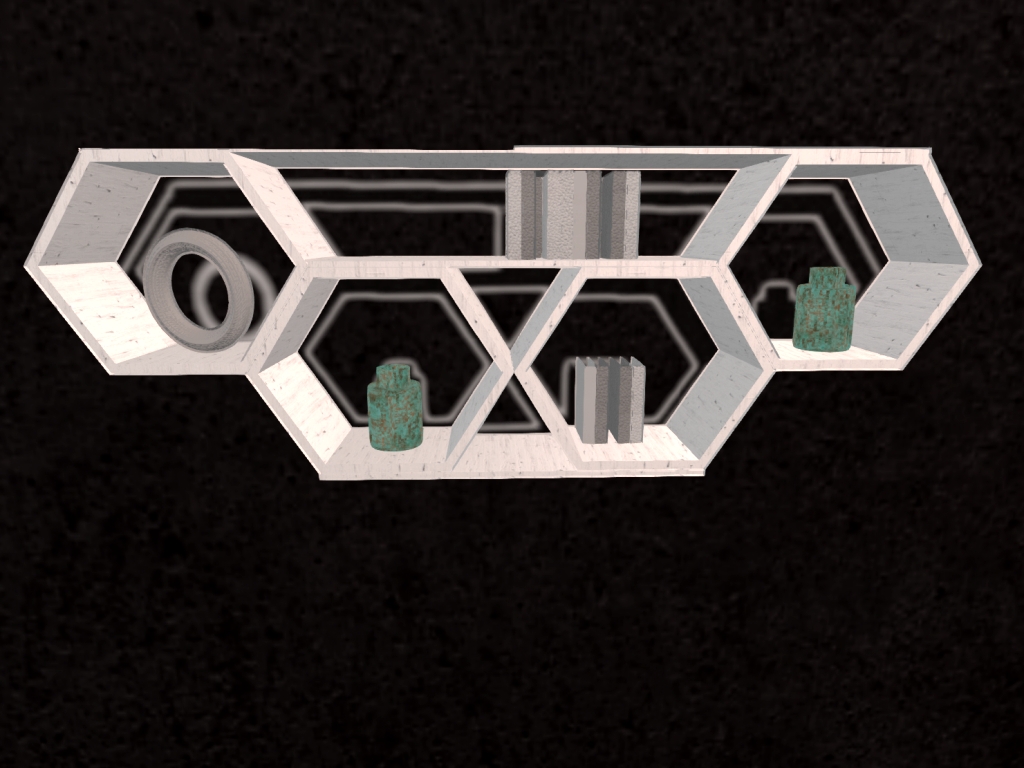 Modern white wood hexagons make up this 1 prim accent shelf, with some decorative items.