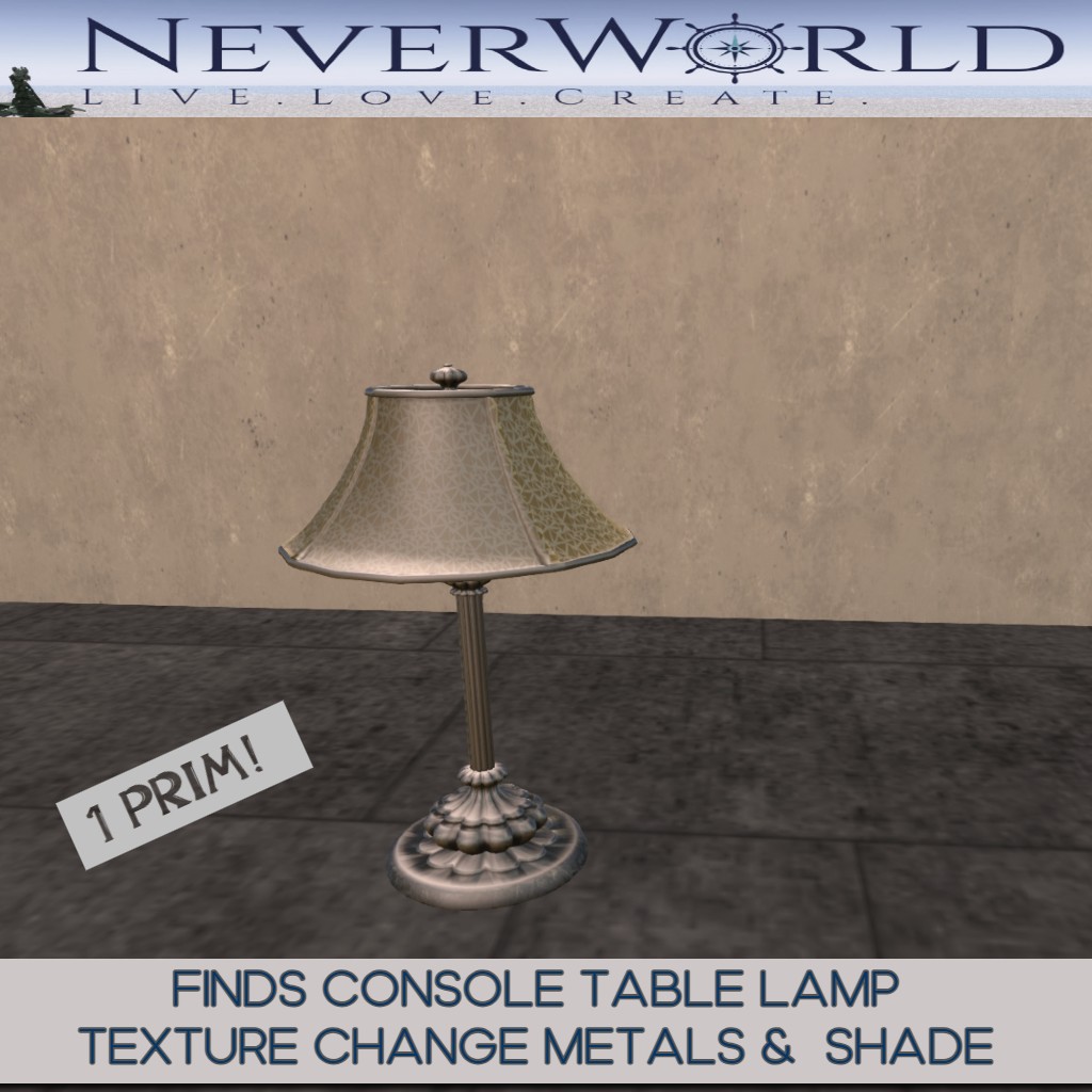 This is a special lamp with many possibilities, at just 1 tiny prim touch this lamp for the light, to change shade and metal textures to fit into an style room.