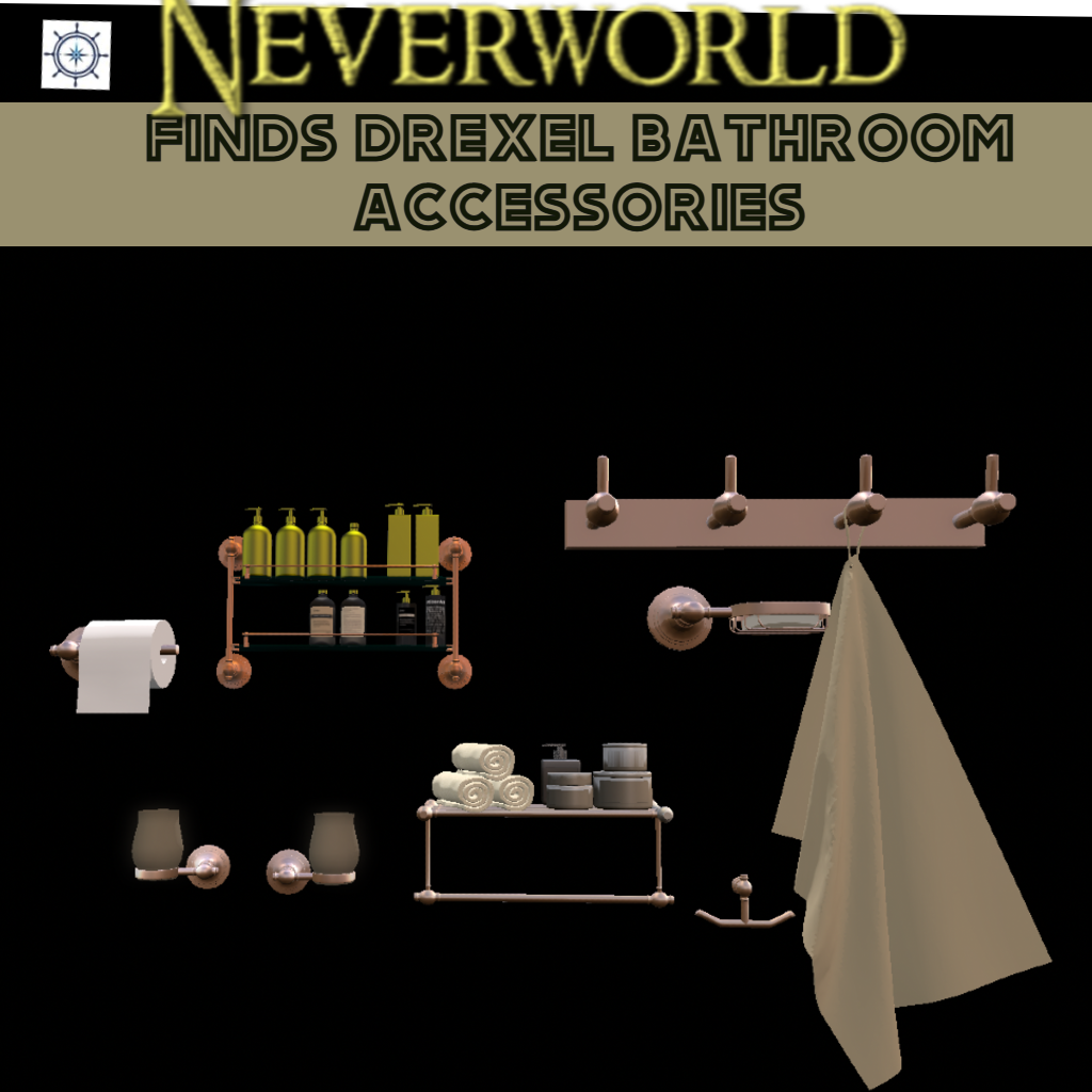 This bronze accessories set for the bathroom is totally non-ripped and would cost much money for similar in Second Life. Most pieces are one prim and all can be easily resized to fit your scene. Please remember to support your opensim creators by enjoying their items and not falling into the trap of using copybotted crap from that commercial grid. FREE for all members. Items are nested, rez and copy, and use what you like.