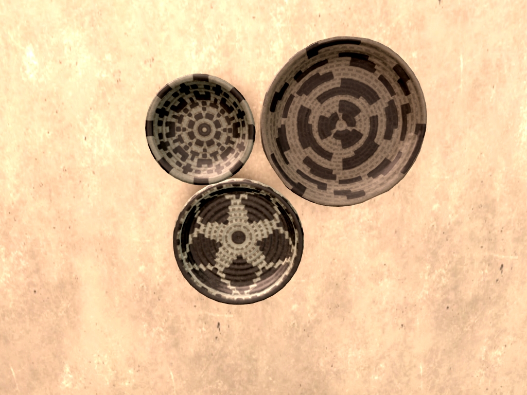 Beautiful Trio of Navajo Baskets at just 2 prims, resize to fit your needs.