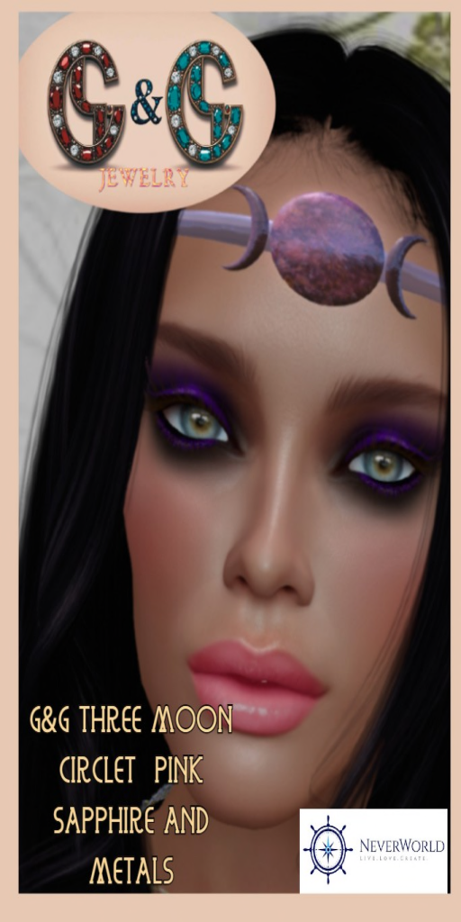 Copper and Gold and Pink and Sapphire Circlet consisting of three moons. At just one prim, this is easy to resize and adjust to fit.