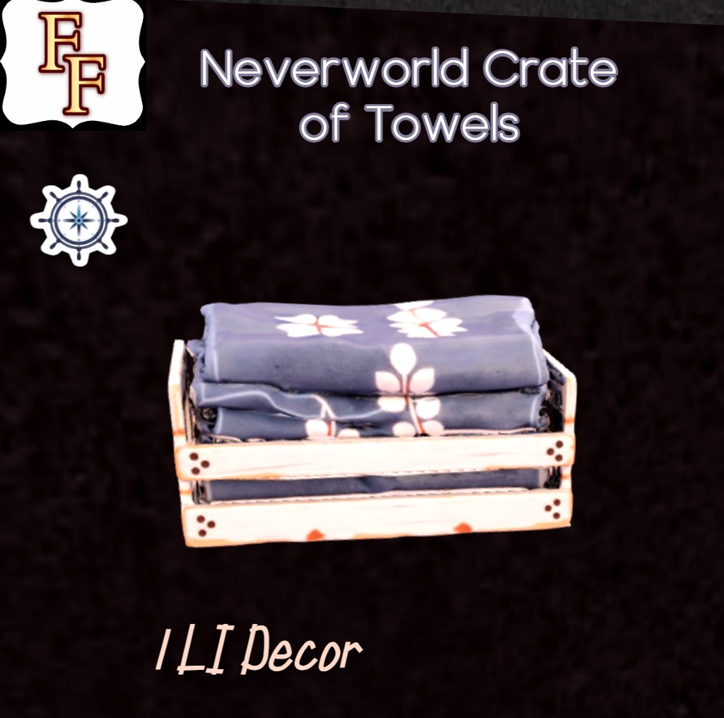 One prim crate of towels is the perfect decor for your bathroom or kitchen. Easy to resize. Made with AI and a great simple piece.