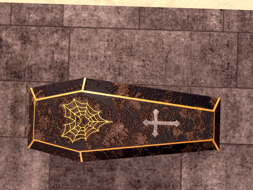 Fancy but decrepit Vampire Coffin. Although this coffin does not open, it makes a great decorative piece for your dungeon or castle.