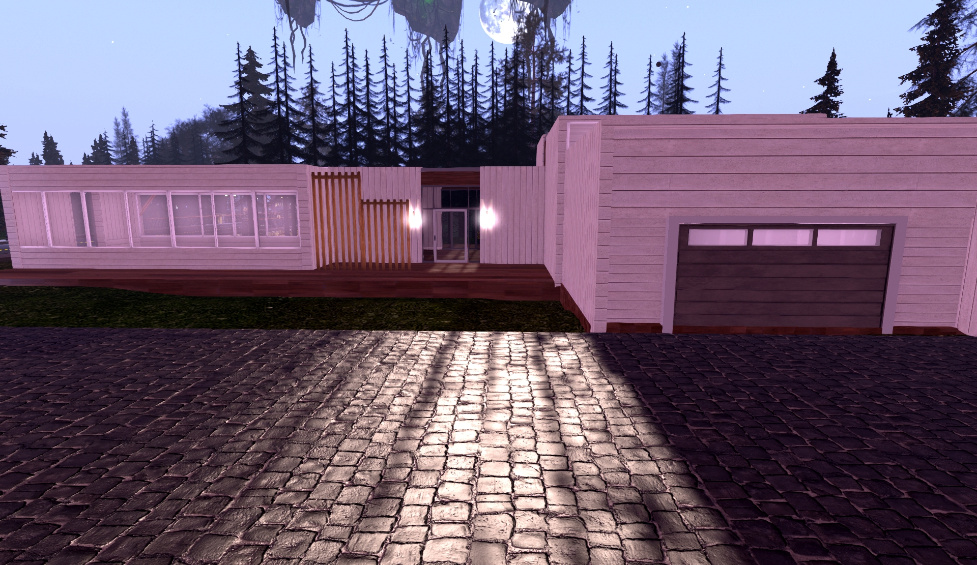 Beautiful Modern Ranch includes an attached garage. Made in Neverworld.
