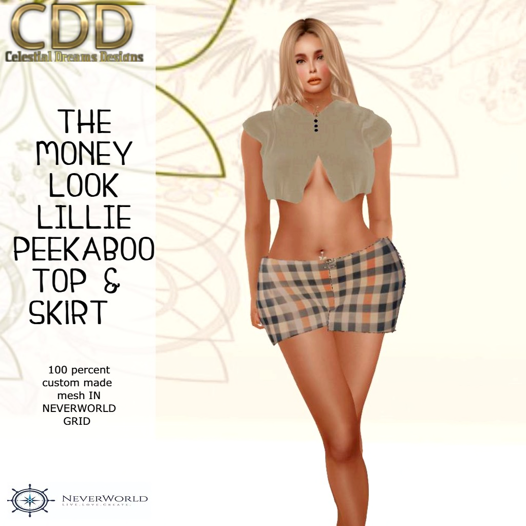 Cute original mesh… pumpkin and blue gray in color, plaid skirt with a short sexy top. Rigged and fitted for Athena. All original style and textures.
