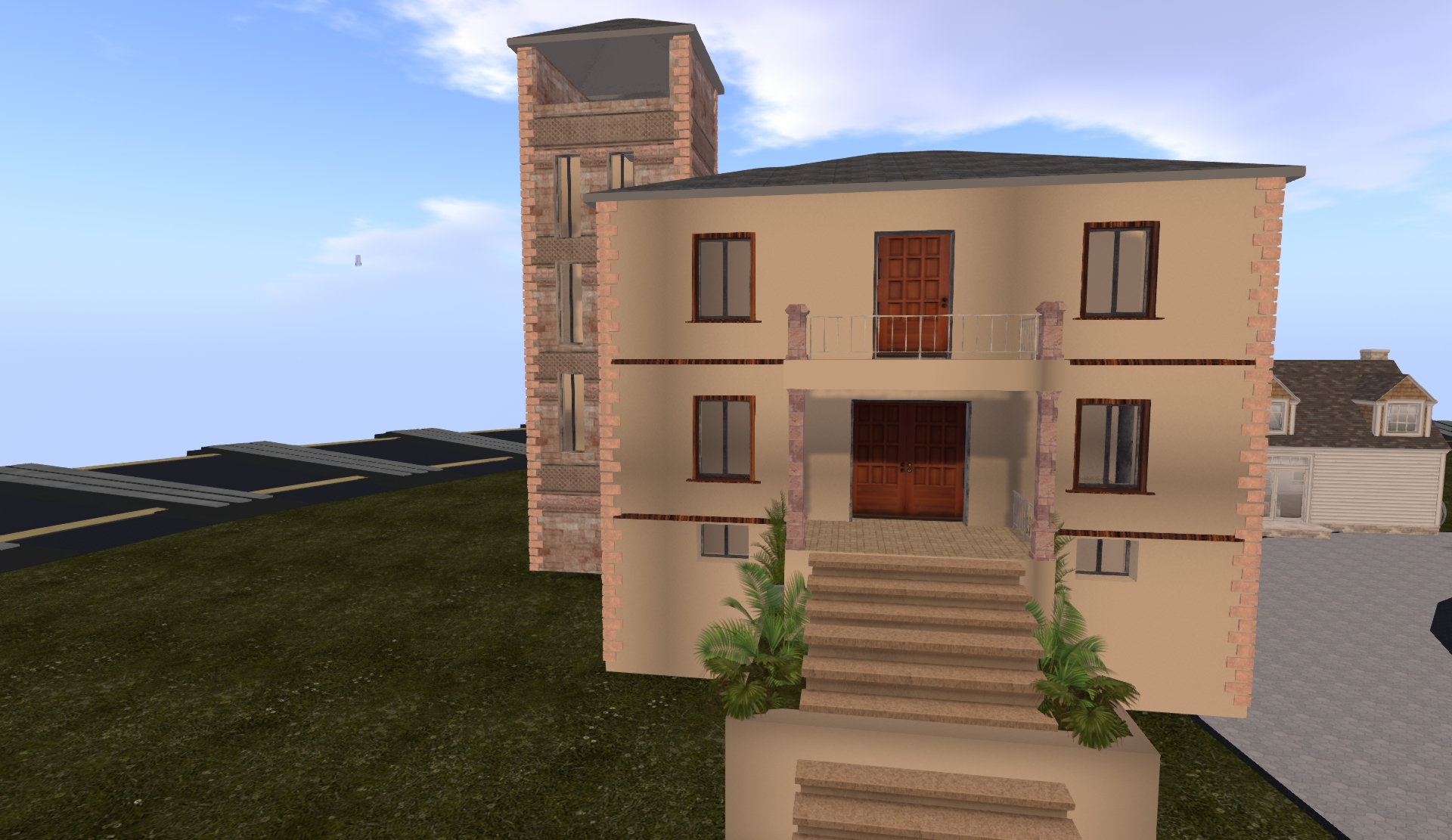 3 breezy floors with tower rooms for this stylized villa. Balconies in some areas made of stone on the outside. Perfect for a Middle Eastern sim or parcel.