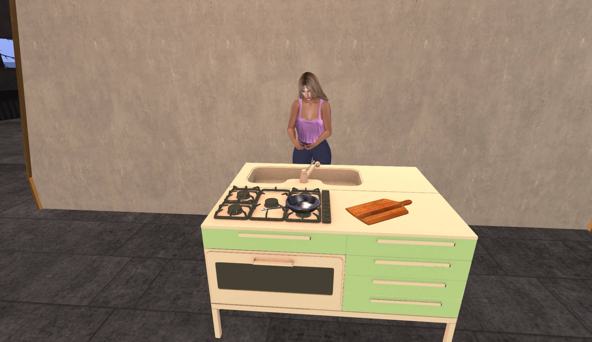with several animations (AO off); nice modern piece with sink and oven, compact and cool.