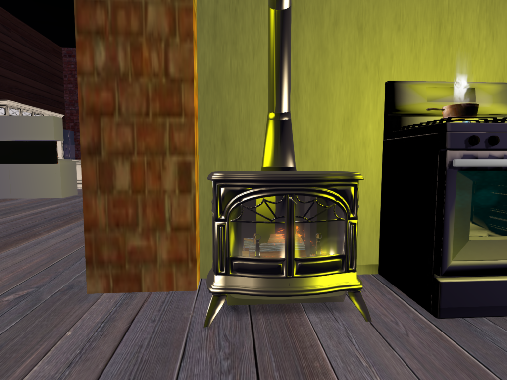 Realistic and cozy 8 prim stove with a fire already lit. Great for a cabin or space where you want a fire but not a large fireplace. You can customize if you like.
